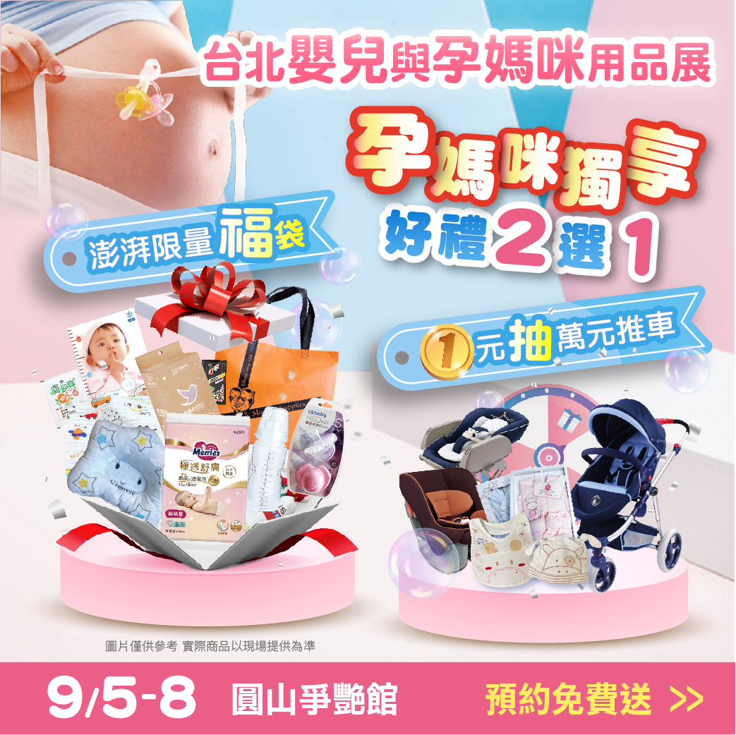 * 孕媽咪「免費福袋&1元抽」限展前預約!成功預約後請勿刪除活動,以免失去領取資格。